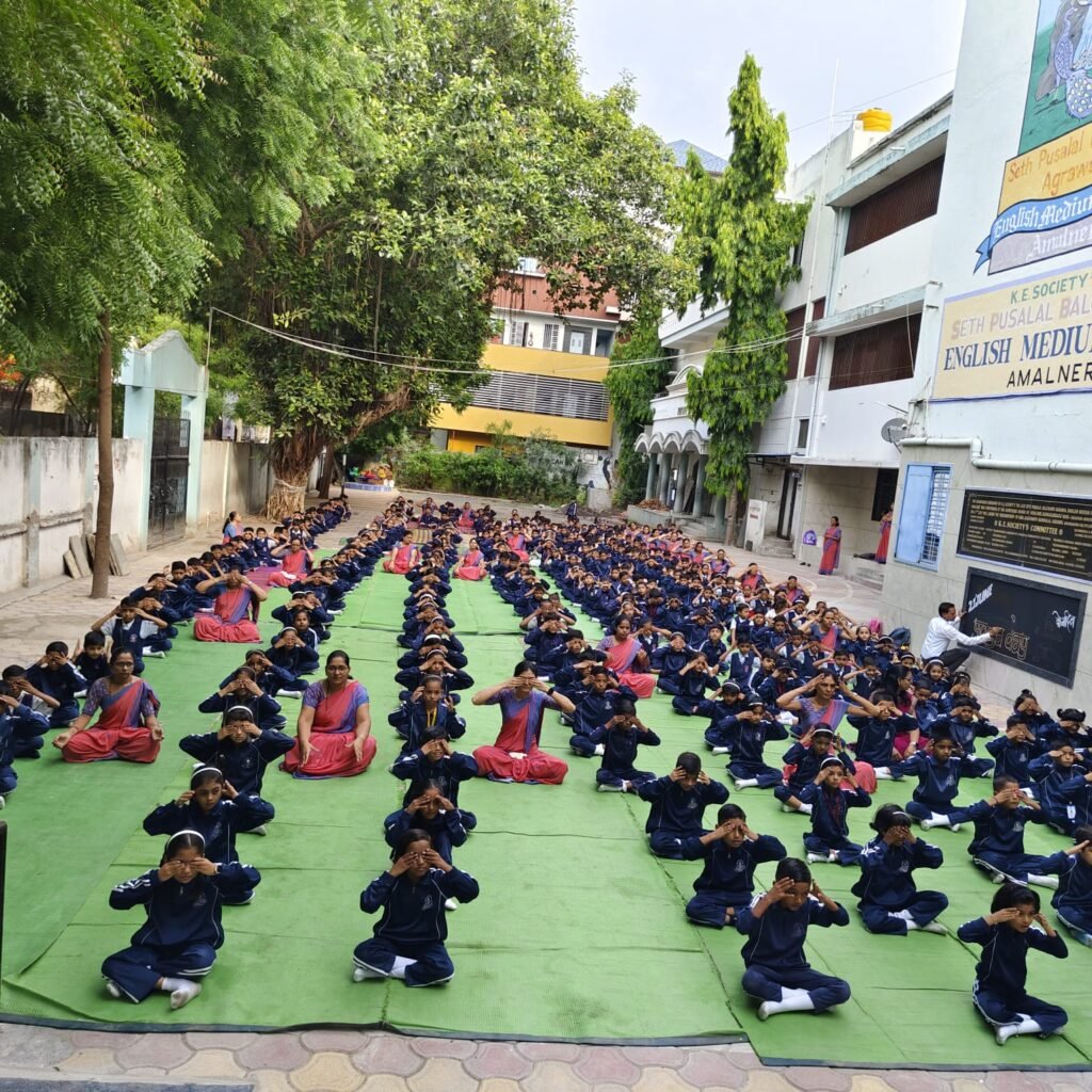 21 जून हा दिवस आंतरराष्ट्रीय योग दिवस म्हणून समस्त विश्वामध्ये साजरा करण्यात येत असतो. याच महान दिवसाचे औचित्य साधून पी.बी.ए. इंग्लिश मीडियम स्कूल मध्ये योग दिवस चैतन्यमय, आनंदमय वातावरणात साजरा करण्यात आला. शाळेच्या भव्य प्रांगणात चटई अंथरून समस्त शाळेतील विद्यार्थ्यांना आसन शिकवण्यात आले. योगाचार्य योग अभ्यासक महेश माळी सर यांनी योगासने विविध प्रात्यक्षिके करून दाखविले. त्याच सोबत क्रीडाशिक्षक विनायक सूर्यवंशी व रोहन मुंदडा यांनी योग व त्याचे सकारात्मक परिणाम व दृष्टिकोन याबद्दलचे मनोगत भाव उपयुक्त स्वरूपात प्रकट केले. तसेच योगद्वारे मानवी जीवन कसे अनुकूल व सकारात्मक चैतन्यमय बनते याची अनेक नानाविध उदाहरणे त्यांनी प्रात्यक्षिक स्वरूपात प्रस्तुत करून सांगितले. मानवी जीवनात त्याचे किती उपयोगी स्वरूपात दुरगामी परिणाम कशा प्रकारचे व किती भव्य व दिव्य चैतन्यमय असतात याबद्दल सुद्धा मनोगत विचार त्यांनी प्रकट केले. चक्रासन, ताडासन भुजंगासन सूर्यनमस्कार अशा नाना विविध योगासनाद्वारे व्यक्ती सक्षम प्रबळ सशक्त तसेच एकाग्रता भाव तयार होणे, बौद्धिक क्षमतेचा विकास होणे, बौद्धिक क्षमता चतुर्य प्रबलता प्राप्त होणे तसेच व्याधी, आजार दुर्धर रोगांपासून आपणास मिळते. सक्षमता प्रदान होते चेहऱ्यावर तेज व तारुण्यमय भावछटा तयार होऊन व्यक्ती आळस झटकून तो व्यक्ती स्फूर्तीमान बनतो. त्याचे आयुर्मान वाढते. तो सकारात्मक विचार अंगीकृत करावयास लागतो. त्याची सफल व्यक्ती म्हणून समाजात गणना केली जाते.