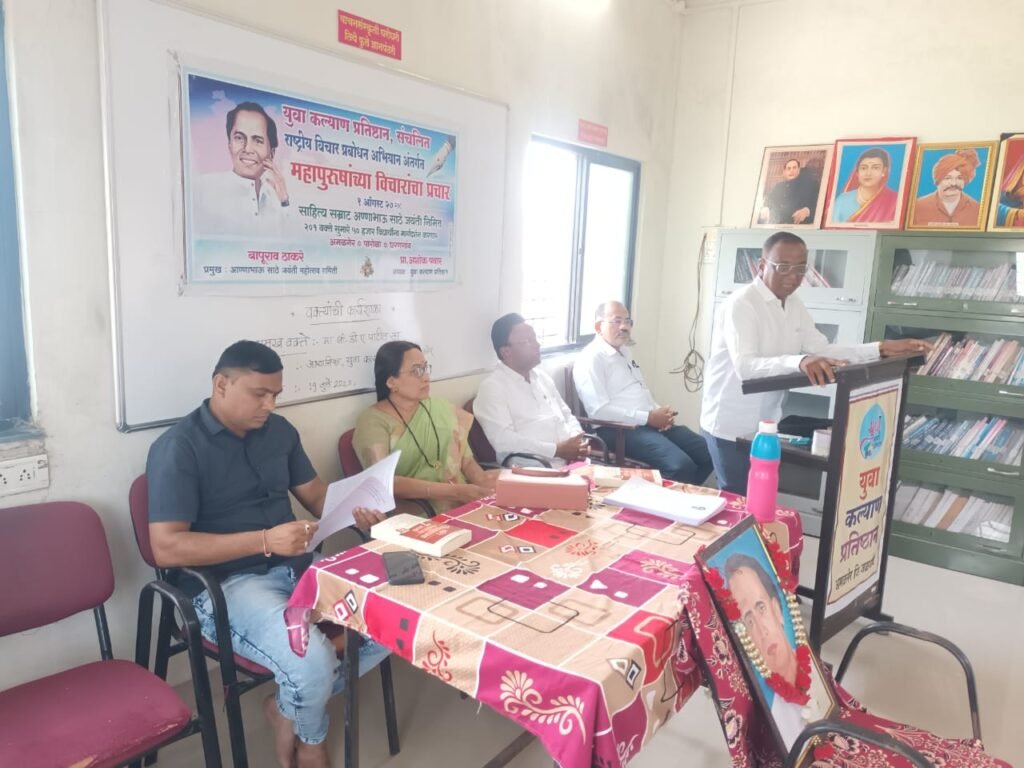समाज सुधारक, साहित्यिक, लोकशाहीर अण्णाभाऊ साठे यांचे विचार व कार्य नव्या पिढीसमोर मांडण्यासाठी 1 ऑगस्टला अण्णाभाऊ साठे यांची जयंती युवा कल्याण प्रतिष्ठान अमळनेर संचलित राष्ट्रीय विचार प्रबोधन अभियानाच्या माध्यमातून याही वर्षी मोठ्या प्रमाणावर साजरी करणार आहे .त्या दृष्टीने वक्त्यांच्या कार्यशाळेचे आयोजन करण्यात आले होते. प्रमुख मार्गदर्शक डी ए पाटील होते, तर अध्यक्षस्थानी प्रा अशोक पवार होते. डॉ प्रा राहुल निकम यांनी सूत्रसंचालन केले ,तर आभार प्रदर्शन अण्णाभाऊ साठे जयंती महोत्सव समिती ,प्रमुख बापूराव ठाकरे सर यांनी केले.
