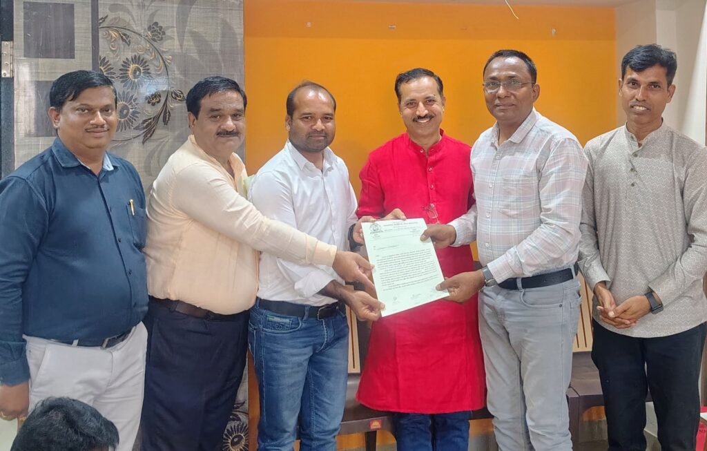 अमळनेर – नवनियुक्त पदाधिकाऱ्यांना नियुक्त पत्र देताना केंद्रीय अध्यक्ष प्रा. डॉ. सदाशिव सूर्यवंशी. शेजारी शरद धनगर, उमेश काटे व डी. ए. धनगर, कुणाल पवार आदी