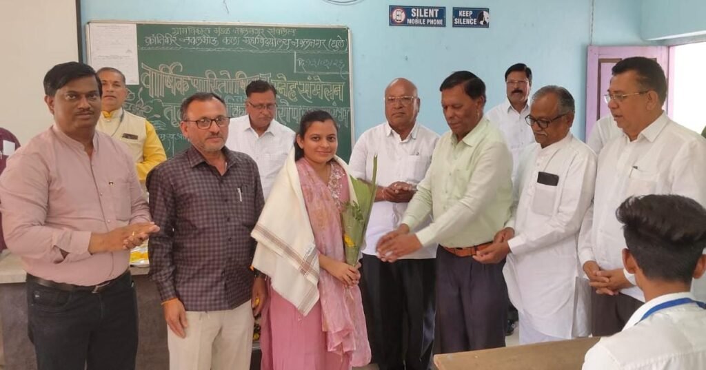 अमळनेर- येथील विजयनाना पाटील आर्मी स्कूल अँड ज्युनियर कॉलेजचे वरिष्ठ लिपिक प्रेमराज सूर्यवंशी यांची सुकन्या कु. वैष्णवी प्रेमराज सूर्यवंशी हिची नुकतीच महाराष्ट्र शासनाच्या भूमी अभिलेख नाशिक विभागात “भू करमापक” अधिकारी म्हणून निवड झाली. या पार्श्वभूमीवर कु. वैष्णवी व तिच्या पालकांचे नवलभाऊ शैक्षणिक परिवारातर्फे विशेष सत्कार करण्यात आला. कु.वैष्णवी सूर्यवंशी हिने सरळ सेवा परीक्षेमध्ये अभ्यास करून अधिकारी पदावर गगन भरारी घेतलेली आहे .सामान्य कुटुंबातील या विद्यार्थिनीने दुर्दम्य इच्छाशक्ती व आत्मविश्वासच्या जोरावर हे यश संपादन केले आहे. नवलभाऊ प्रतिष्ठान चे मानद शिक्षण संचालक प्रा.सुनील गरुड, नवलभाऊ प्रतिष्ठान चे प्रशासकीय अधिकारी प्रा.शाम पवार, नवलभाऊ प्रतिष्ठान चे प्रशासकीय अधिकारी डी बी पाटील, निवृत्त प्राचार्य डि.के पवार सर, राज्य सैनिकी शाळा असोसिएशनचे कार्यकारी सदस्य उमेश काटे, प्रा डॉ हुकूमचंद जाधव सर आदी प्रमुख मान्यवरांच्या उपस्थितीत कु. वैष्णवी हिचा सत्कार करण्यात आला. महाविद्यालयाचे प्राचार्य डॉ. विजय उभाळे हे अध्यक्षस्थानी होते. या कार्यक्रमाला प्रा. डॉ.यु.वाय.गांगुर्डे, प्रा. डॉ.एन.झेड. पाटील, डॉ.एस.जे. पाटील, प्रा. डॉ .के.डी बागुल, प्रा.शिवाजी सूर्यवंशी, प्रा. विजय शिंदे, प्रा.सुजाता निकम, प्रा. छाया पाटील यांच्यासह शिक्षकेतर कर्मचारी वृंद उपस्थित होते. दरम्यान कु. वैष्णवी हिच्या यशाबद्दल संस्थाध्यक्ष तथा माजी केंद्रीय मंत्री विजय नवल पाटील, संस्थेच्या प्रमुख मार्गदर्शिका शिलाताई पाटील, संस्था कार्याध्यक्ष अनिकेत पाटील, मुख्य प्रशासकीय अधिकारी प्रियदर्शनी पाटील, प्रशासकीय अधिकारी एल. डी. पाटील, प्रशासकीय अधिकारी बी. टी. पाटील आदींनी अभिनंदन केले आहे.