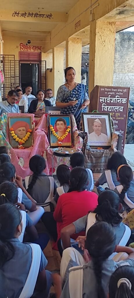 क्रांतीज्योती एक सुलक्षणी मुलगी, आदर्श गृहिणी ,उत्तम विद्यार्थिनी, आदर्श शिक्षिका ,आज्ञाधारक सून, कष्टाळू पत्नी , चौकस व्यवस्थापक, कवयित्री, धुरंदर सत्यशोधक ,ज्वलंत समाजसेविका अशा विविध गुणांनी संपन्न असलेल्या क्रांतीज्योती सावित्रीबाई फुले यांनी *जीवनाविषयी चिंतन करायला शिकवले *.असे उदगार युवा कल्याण प्रतिष्ठान च्या वक्त्या श्रीमती आशा महाजन यांनी काढले त्या सार्वजनिक विद्यालय सारबेटे येथे सावित्रीबाई जयंती निमित्त बोलत होत्या.