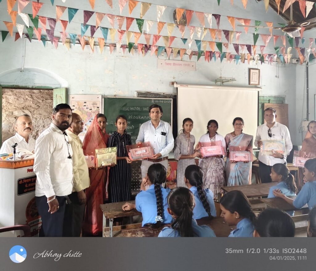 *ज जि वि प्र मराठा विद्याप्रसारक मंडळ संचलित” किसान माध्यमिक विद्यालय, शेवगे बु येथे आज दि 1-4-2025 SHP अंतर्गत School Health Programme अंतर्गत कार्यक्रमाचे अध्यक्ष विद्यालयाचे मुख्याध्यापक श्री. संजय जाधवसर हे होते. सर्व मुलींना आरोग्यदायी किट देण्यात आले यावेळी डॉ तुषार पाटील यांनी किशोर वयीन मुलींच्या समस्या व आरोग्य यावर मार्गदर्शन केले, व श्रीमती मोहिनी चव्हाण मॅडम व प्रमिला ईशी मॅडम यांनी सर्व विद्यार्थ्यांच्या आरोग्य विषयक समस्यांवर तसेच रोगप्रतिबंधक उपाययोजना, आरोग्य शिक्षण व पोषणाविषयी जागरूकता निर्माण करणे व समुपदेशन केले.*